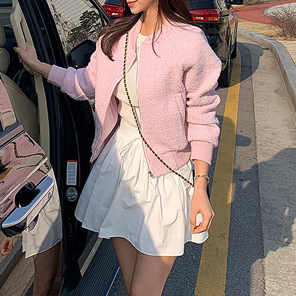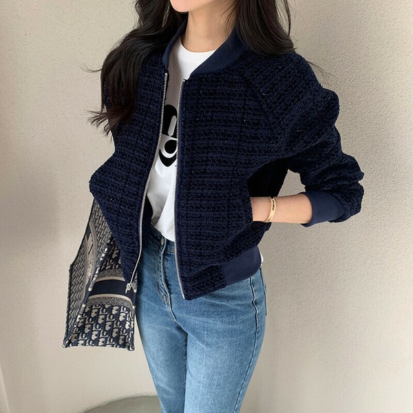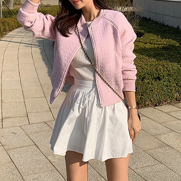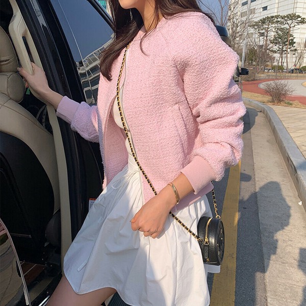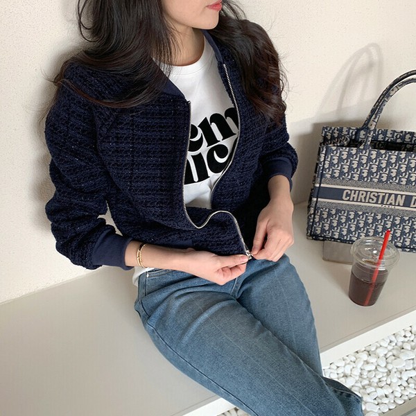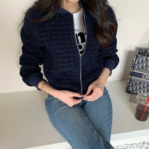 ツイードブルゾン ノーカラージャケット ブルゾン ツイード ノーカラーブルゾン ジャケット アウター