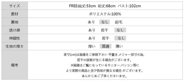 総丈 53cm 裄丈 68cm バスト 102cm