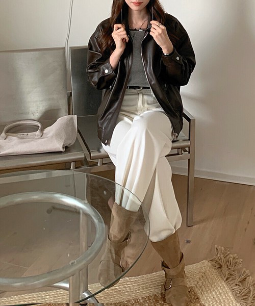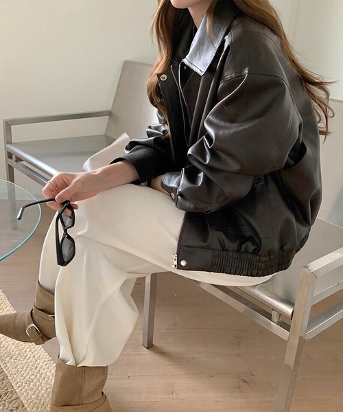フェイクレザージャケット アウター ブルゾン ジャケット レディース フェイクレザーブルゾン レザー