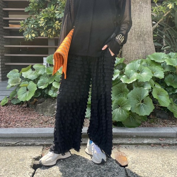 【人気定番商品 】ティアードフリルパンツカラー展開豊富リラックス すっきり 痩せ見え