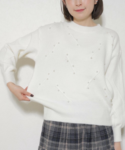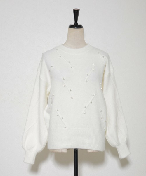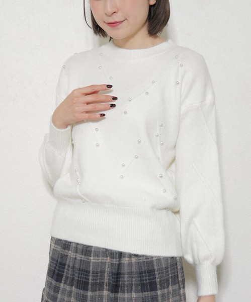 パール付き 長袖ニット2025人気 新作 chouchou東京