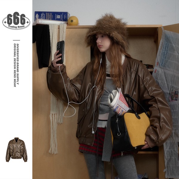 P23644 メンズ アメリカン レトロ ジャケット PUレザー コート ユニセックス 2025冬新作