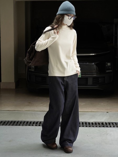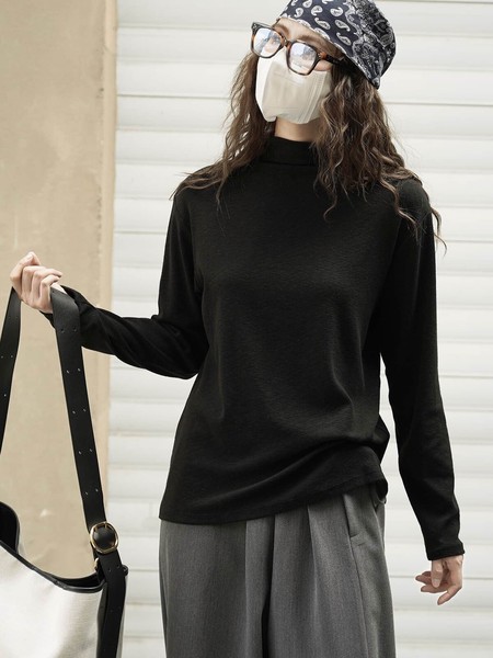 u29609風 ハイネック 無地 インナー スリム フィット トップス レディース 2025冬新作