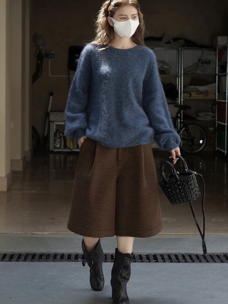 u29611風 リラックス クルーネック ウール ニット ゆったり トップス レディース 2025冬新作