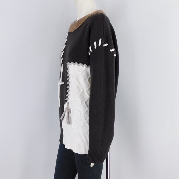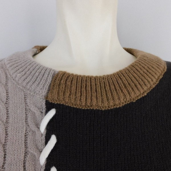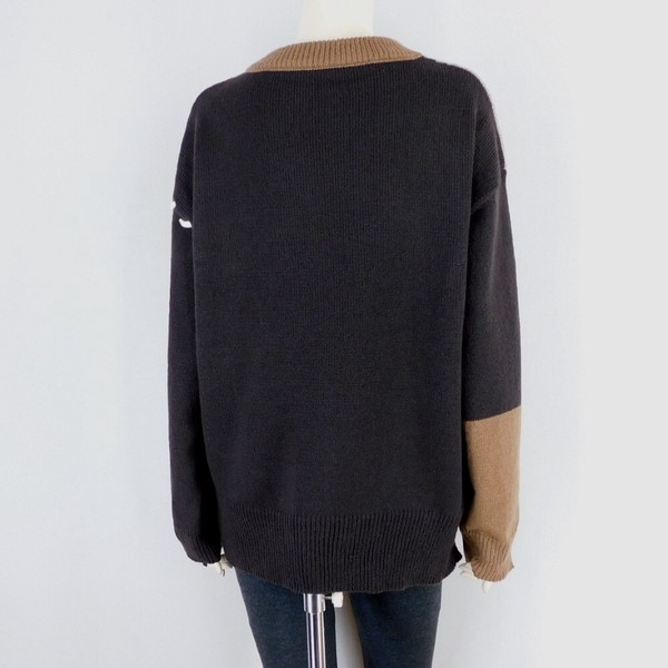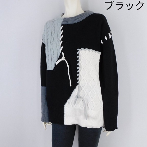 【2025秋冬新作】2色展開パッチワークデザインニットゆったりサイズ