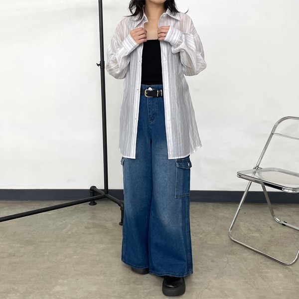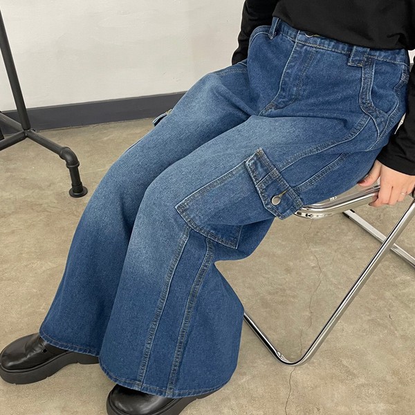 【2026新作】デニムカーゴパンツ ワイド ロング オールシーズン ゆったり 体型カバー 大人