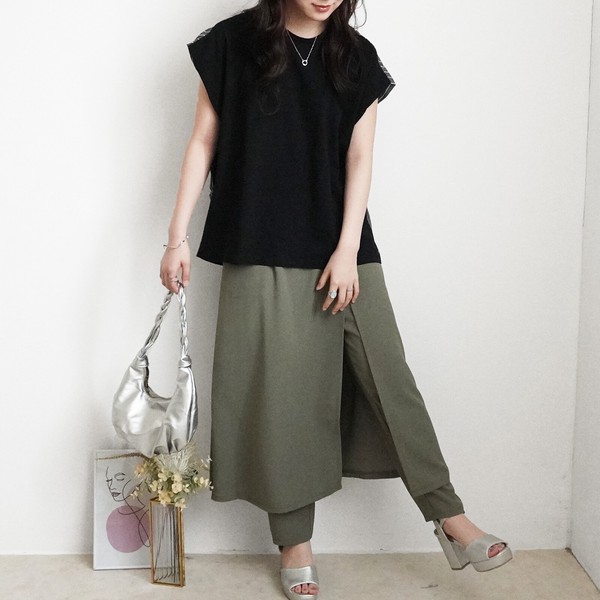 【2026SS早割】スカートレイヤードパンツ スカパン スカート風パンツ 巻きスカート 2026春新作【】