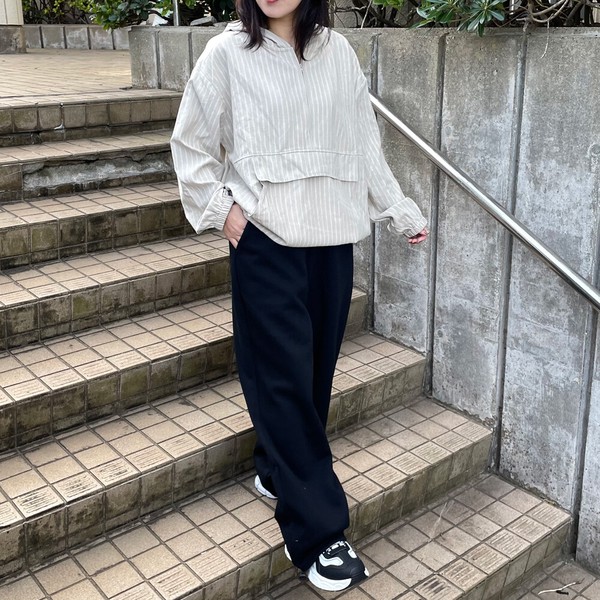 着丈101cm、ウエスト64cm(ゴム仕様)、ヒップ102cm、もも周り62cm、股上35cm、股下67cm、すそ周り53cm