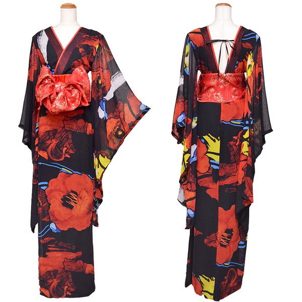 1281花柄 セクシー 深めスリット 美脚 オフショル 花魁 着物 ドレス コスプレ イベント ハロウィン