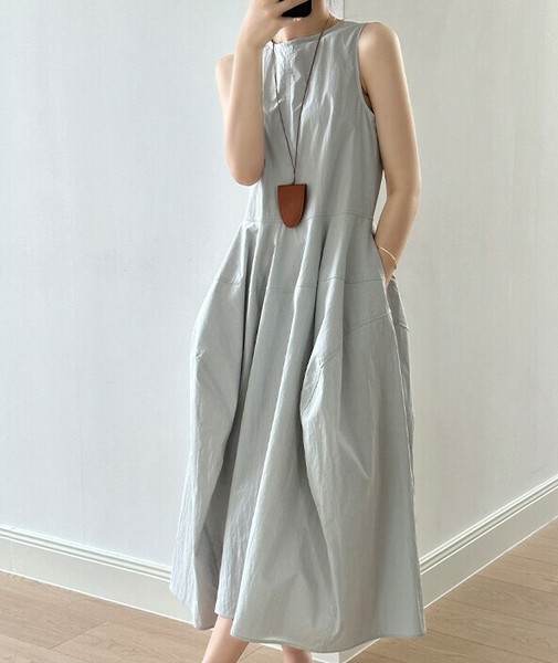 ワンピース ノースリーブ 無地 ゆったり 快適 レディース ファッション BQ7009