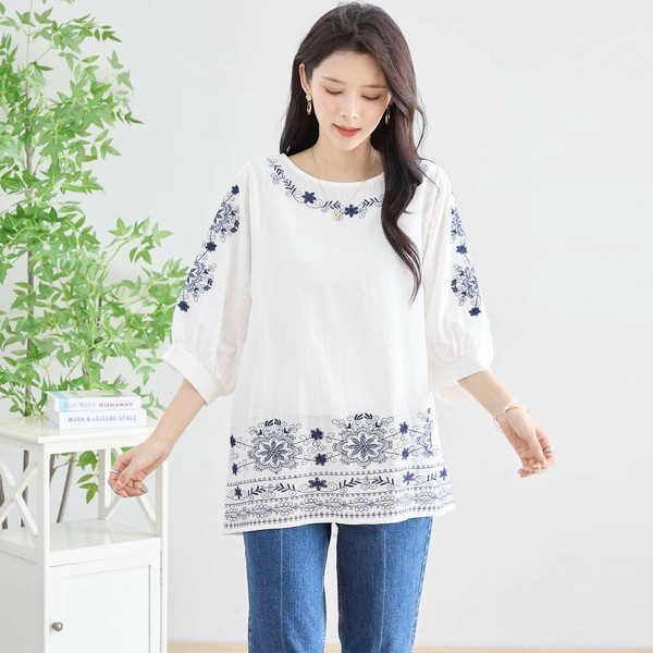 【2025新作】【M?L】ナチュラル刺繍コットンブラウス(N13-126)(1号店)FM1