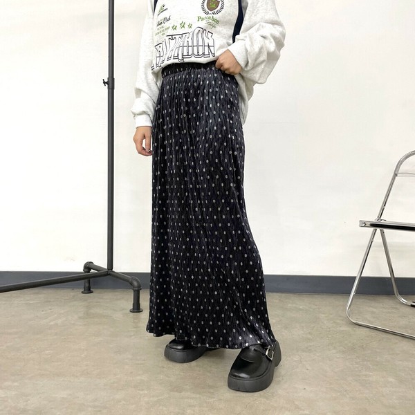 着丈90cm、ウエスト62cm(ゴム仕様)、ヒップ88cm、すそ周り136cm