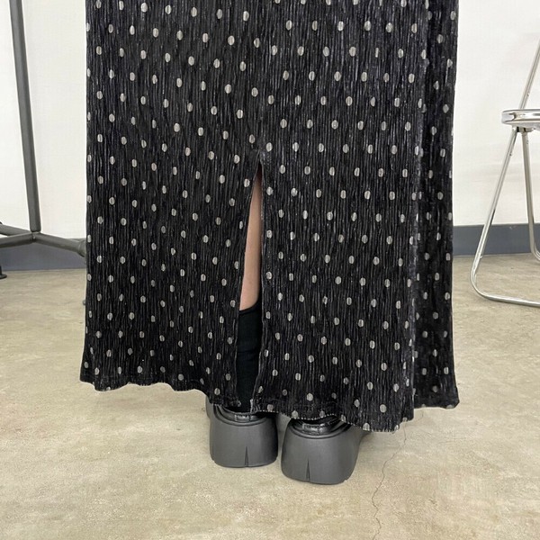 【2025新作】ベロアドットIラインスカート 水玉 ナロースカート ロングスカート ロンスカ 秋冬服
