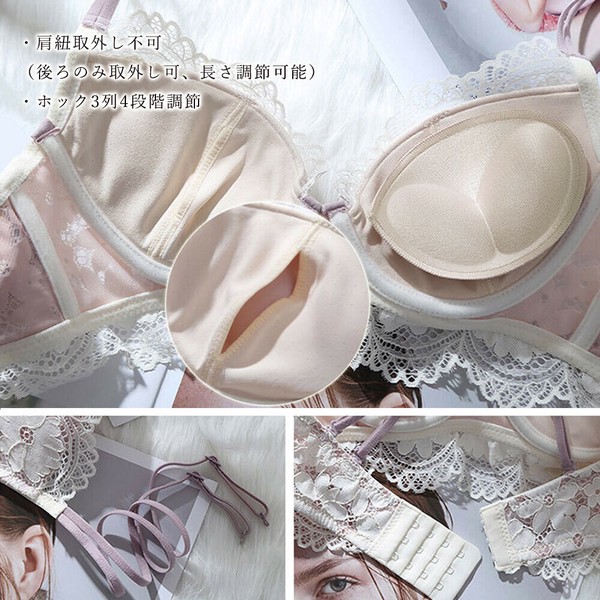 ●仕様:3/4カップ、パッド挿入可、付属パッドあり、ホック3列4段階調節、肩紐取外し不可、ワイヤーあり