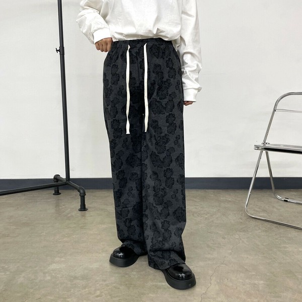 【2025新作】柄ワイドパンツ イージー ロング ゆったり ワイド 花柄 ペイズリー柄 秋 冬