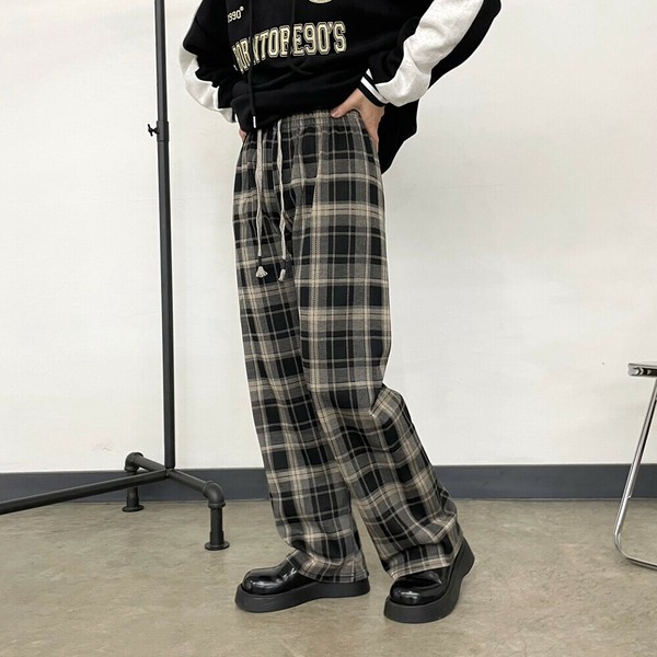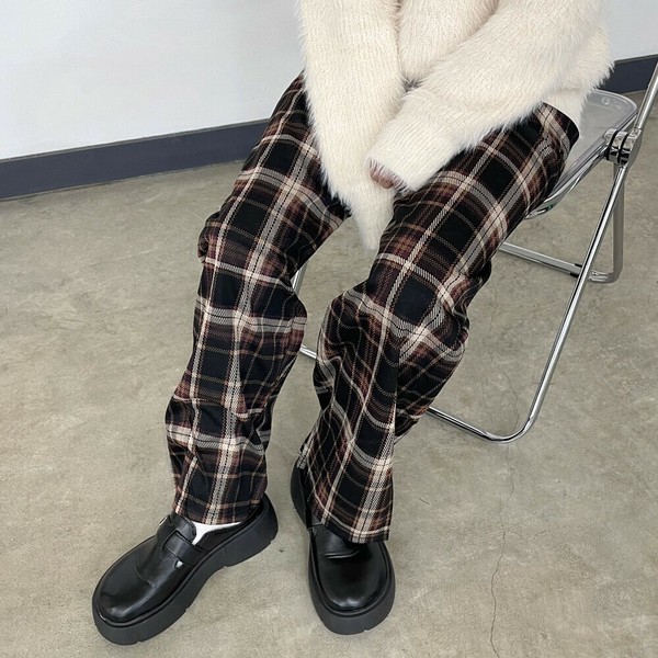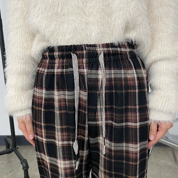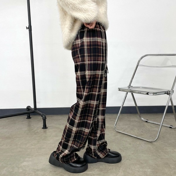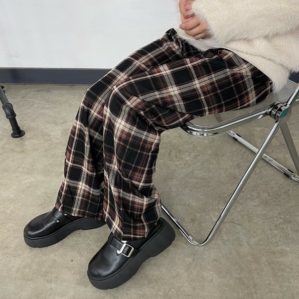 【2025新作】チェックワイドパンツ ロング イージー 秋 冬 ゆったり 柄 ウエストゴム