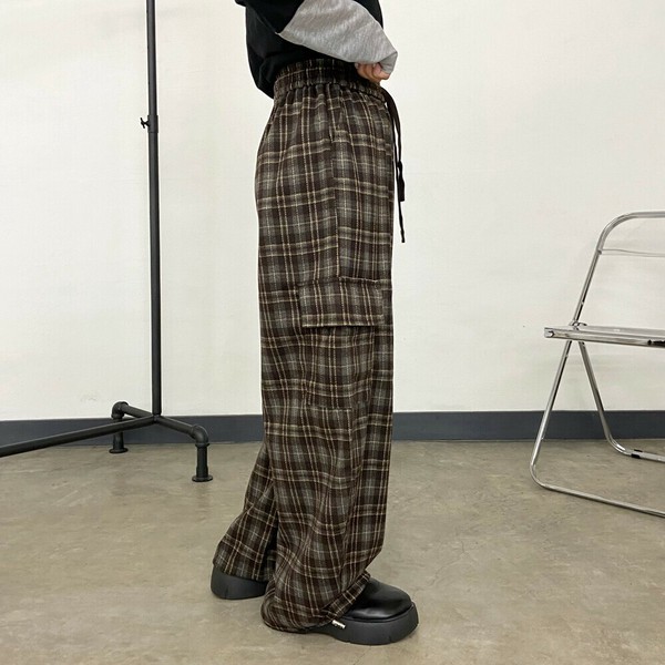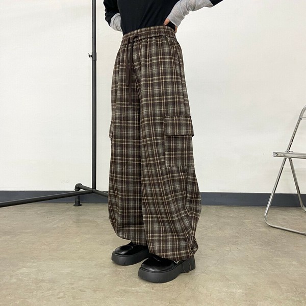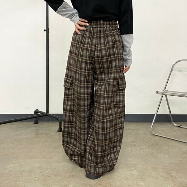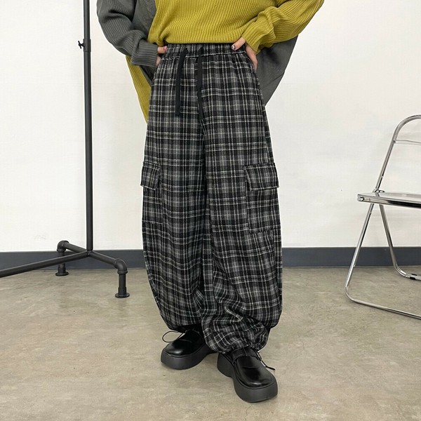 【2025新作】チェックカーゴパンツ ワイド イージー ドロスト 柄 ゆったり ワイド 秋 冬