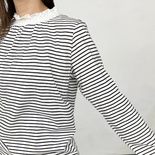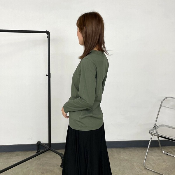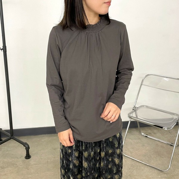【2025新作】襟スモッキングロンT レース フリル インナー ゆったり ワイド 秋 冬 春 長袖