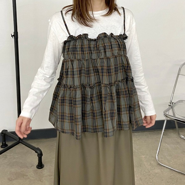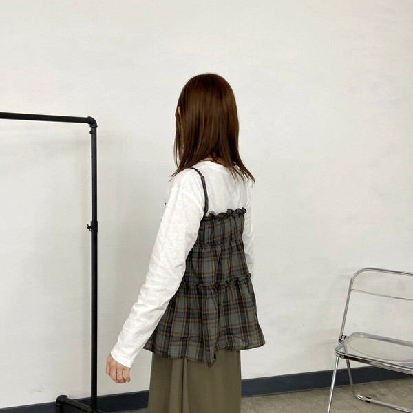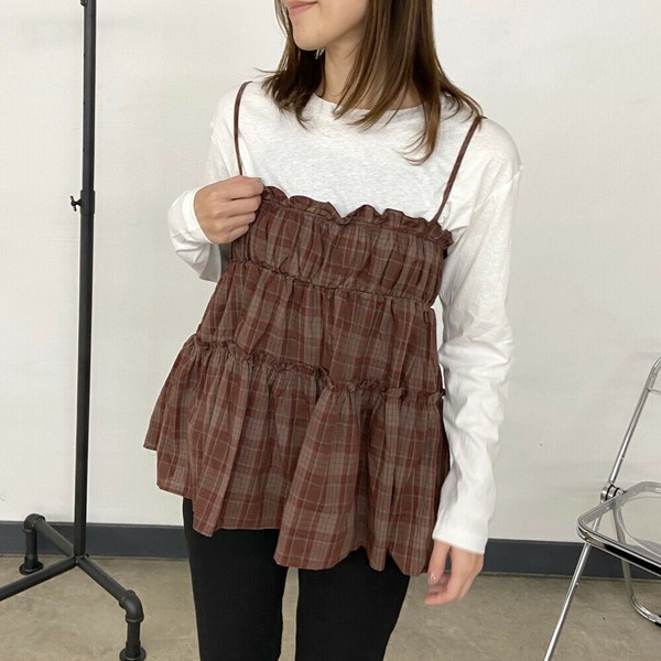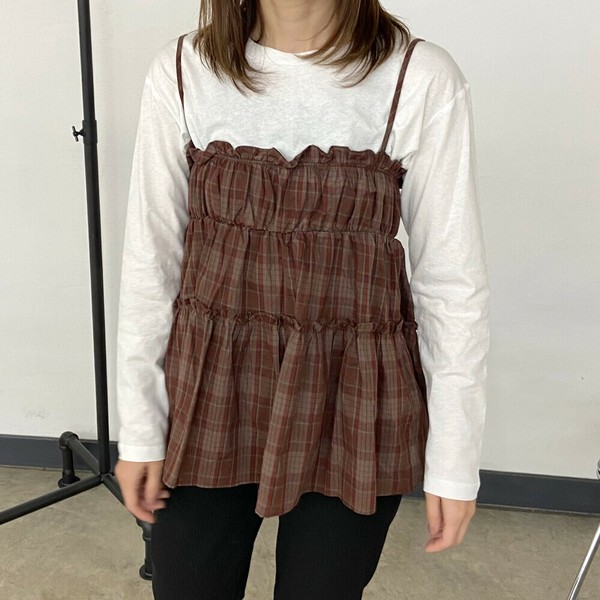 【2025新作】チェックキャミロンTセット アンサンブル ビスチェ 長袖 ベスト 秋 冬