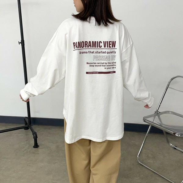 【2025新作】バッグロゴBIGロンT 長袖 プルオーバー Tシャツ 秋 冬 ワイド ゆったり