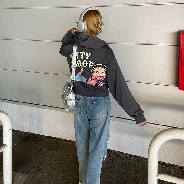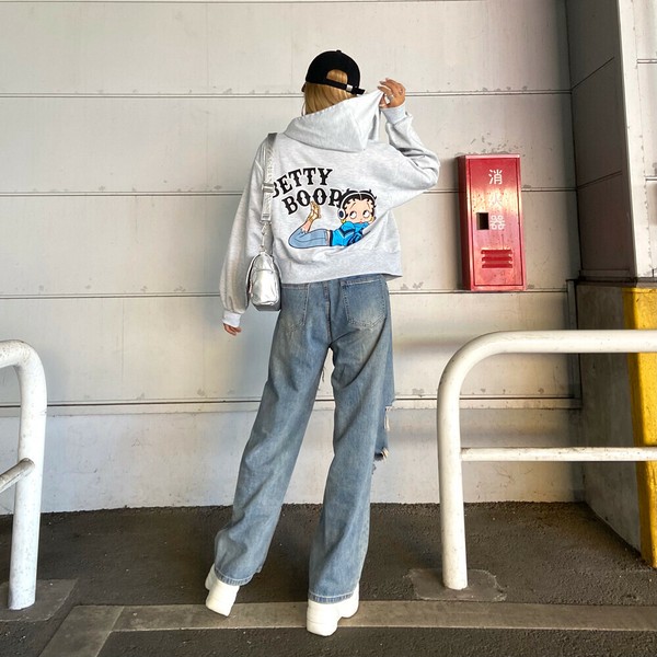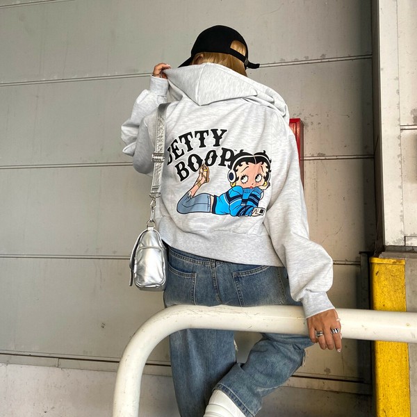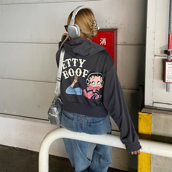 【2025新作】BETTYBOOPフードZIPパーカー ベティちゃん キャラクター バックプリント 刺?ロゴ
