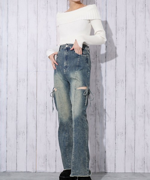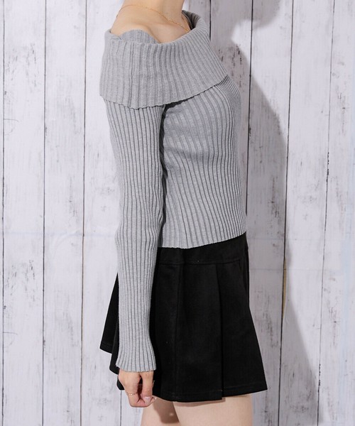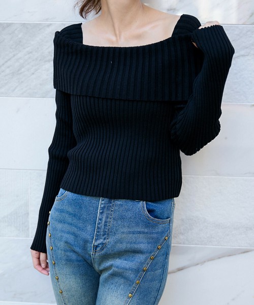 《オフショル×細リブニット》レディース プルオーバー 長袖トップス 肩見せ セクシー 秋冬