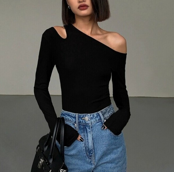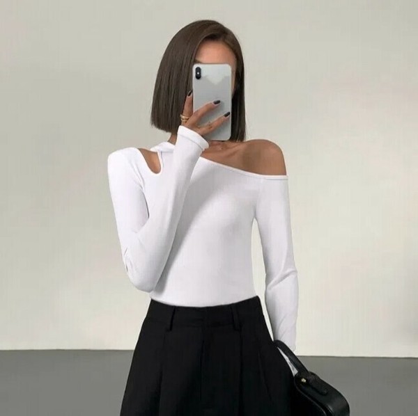 Tシャツ 長袖 セクシー 無地 快適 レディース ファッション ABQ545