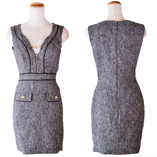 1529ツイード ワンピース ミニドレス キャバドレス パーティードレス