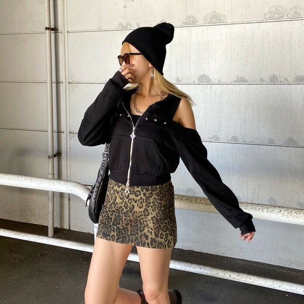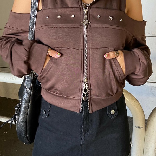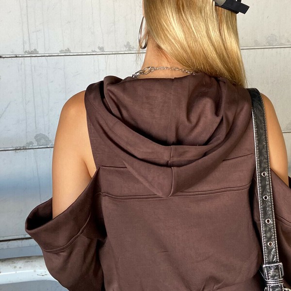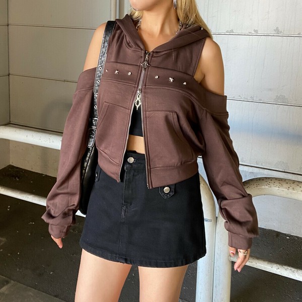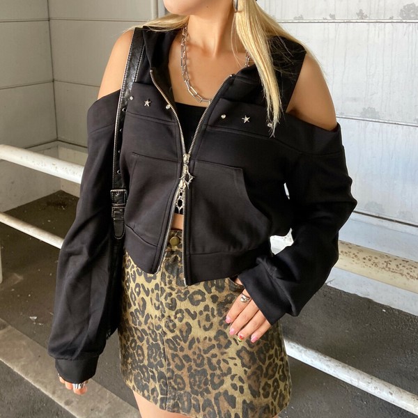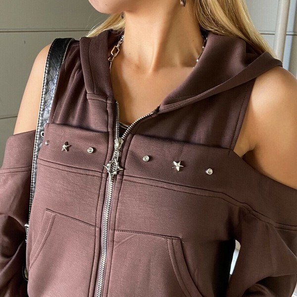 【再入荷】【2025新作】カットショルダーWZIPパーカー カットオフ 肩開き モチーフジップ 秋服