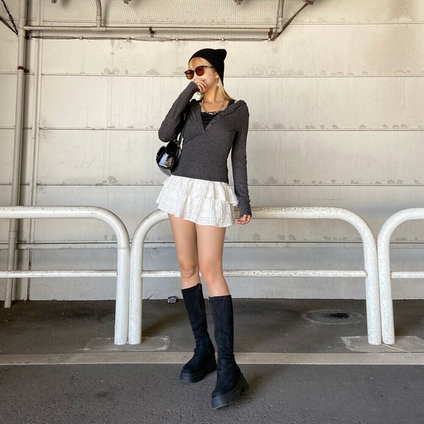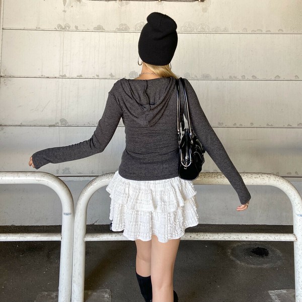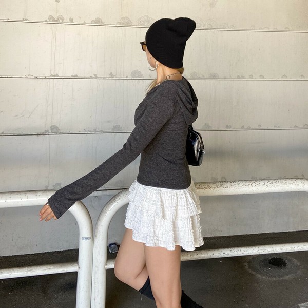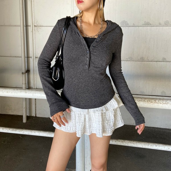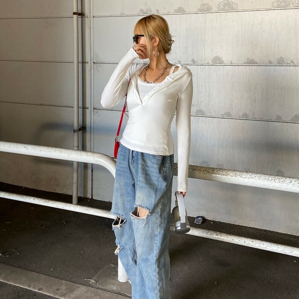 サムホール付きサイドスリットシアートップスルーズ感のあるシルエットと、シアー素材がトレンド感のあるサムホール付きトップス。インナーにはブラトップやキャミソールなどをレイヤードするのがおすすめです。サイドにスリットが入っているので抜け感のある印象に。