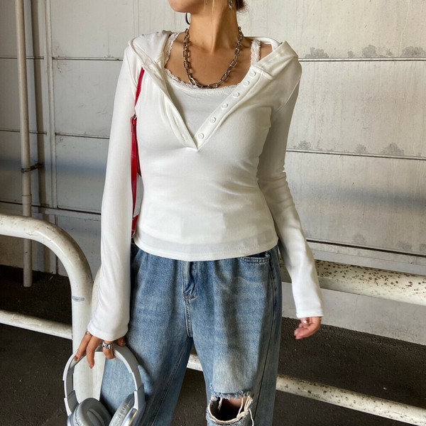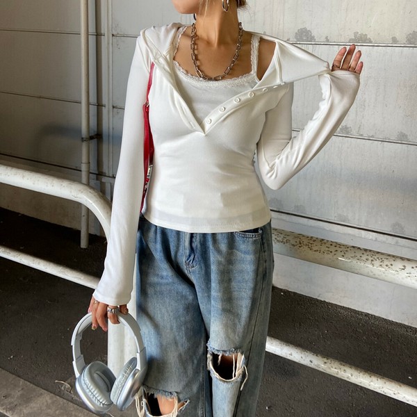 春服のクローゼットをアップデート。フロントZIPがポイントのデザイントップスと、ホルタネックインナーがセットになった2ピースアイテム。セットでの着用はもちろん、シングルユースも出来るので、スタイリングの幅が広がります◎インナーはパッド入りなので、インナーレスで着用出来る優秀アイテムです。程良くボディにフィットして、女性らしいラインをメイク◎コンパクトなシルエットなので、ワイドボトム合わせがおすすめ。バランスの取りやすい丈感で、合わせやすい所も魅力。ワードローブに取り入れたい1枚です。※オフホワイトは透け感があります。[モデル身長:167cm][モデル着用サイズ:F]