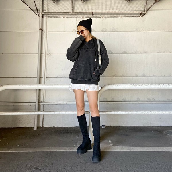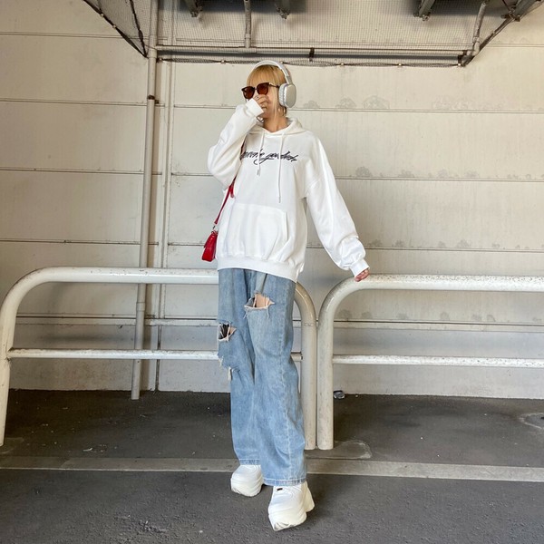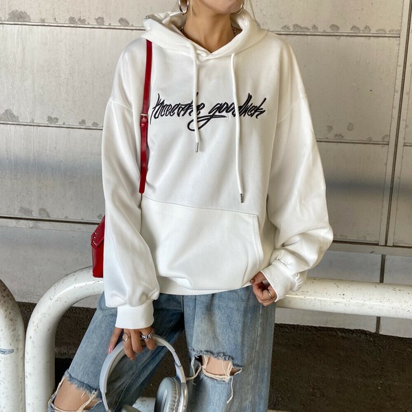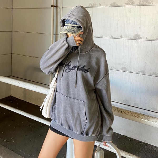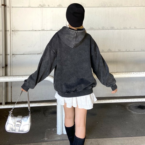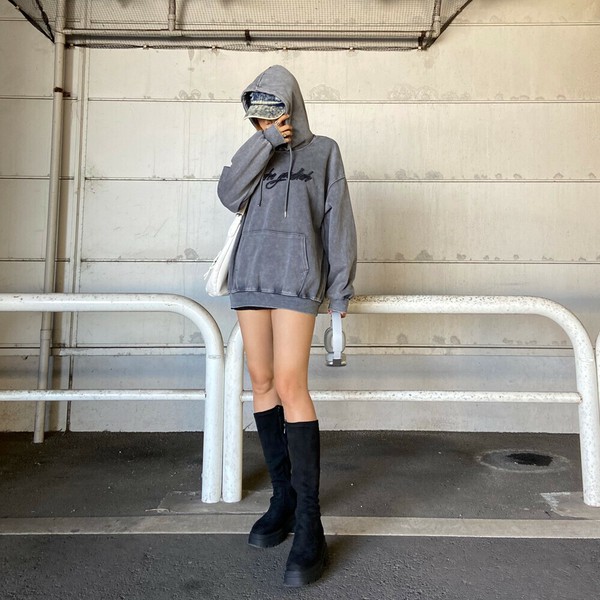 【再入荷】【2025新作】ロゴ刺繍フードビッグチュニック パーカープルオーバー ウォッシュド 秋服