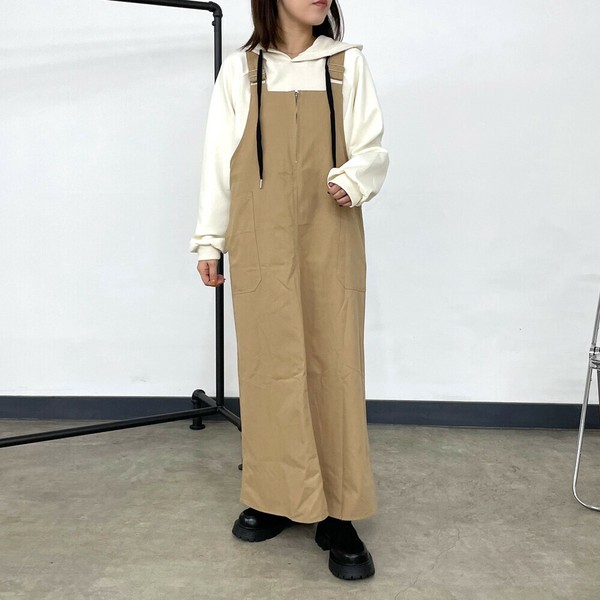 【2025新作】ツイルジャンパースカート ジャンスカ ロング丈 大人カジュアル 秋服 重ね着