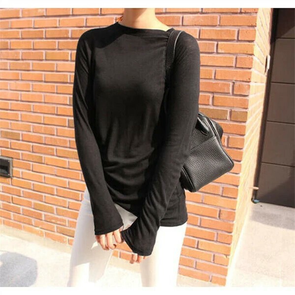 <SALE>激安セール 大人っっぽい透け丸首Tシャツ スリムライン ロングスリーブ 仕事着に