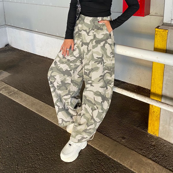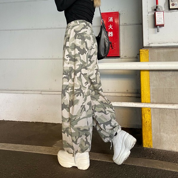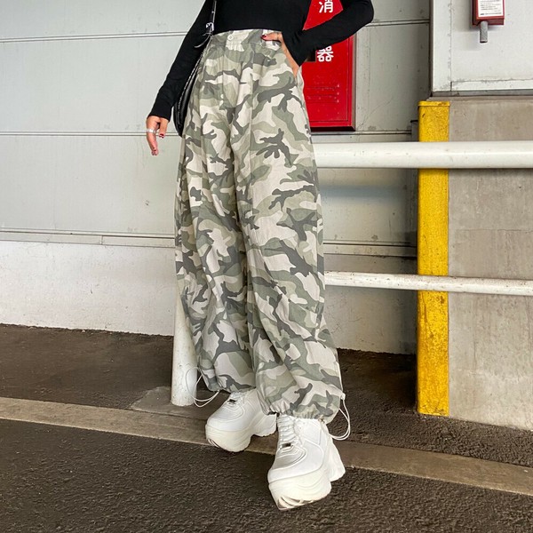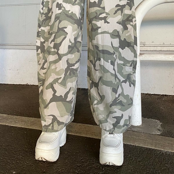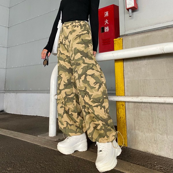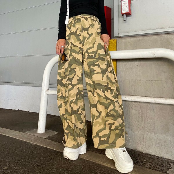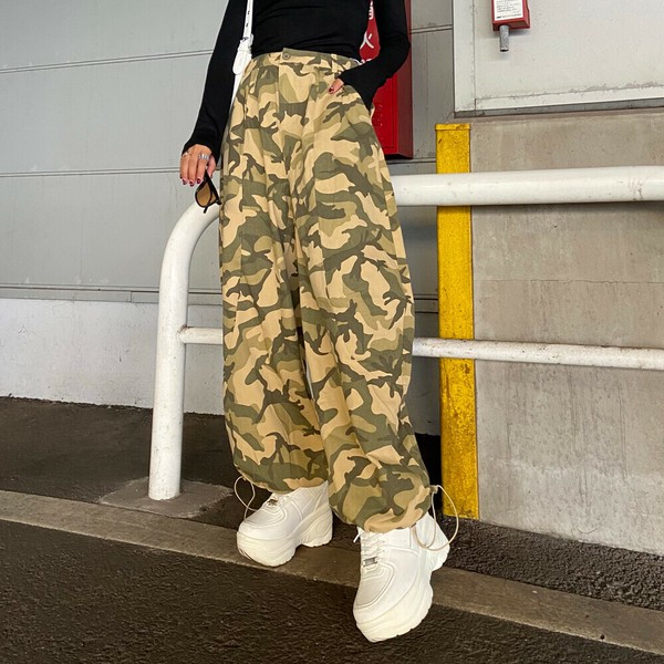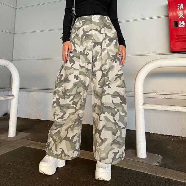 【2025新作】迷彩ワイドパンツ 2WAY カーブパンツ オーバーサイズ カモフラ 総柄 ロングボトム