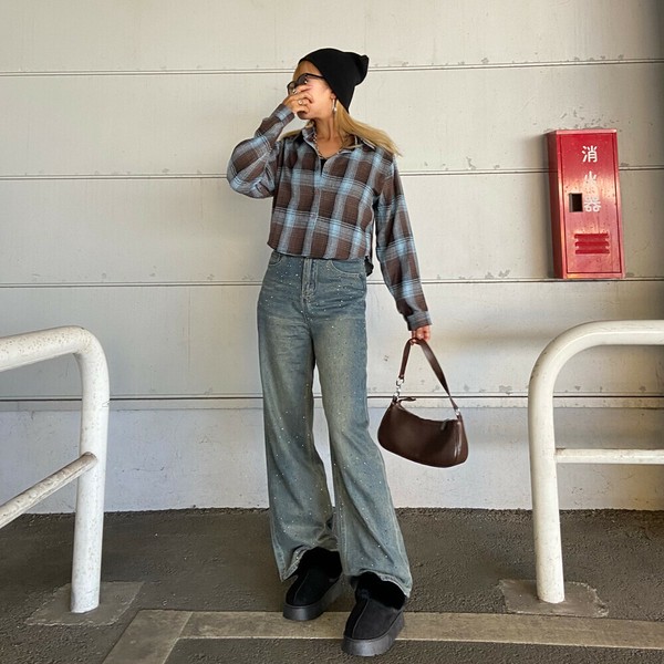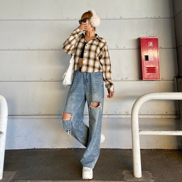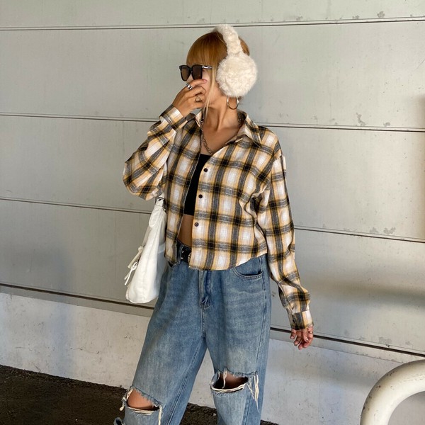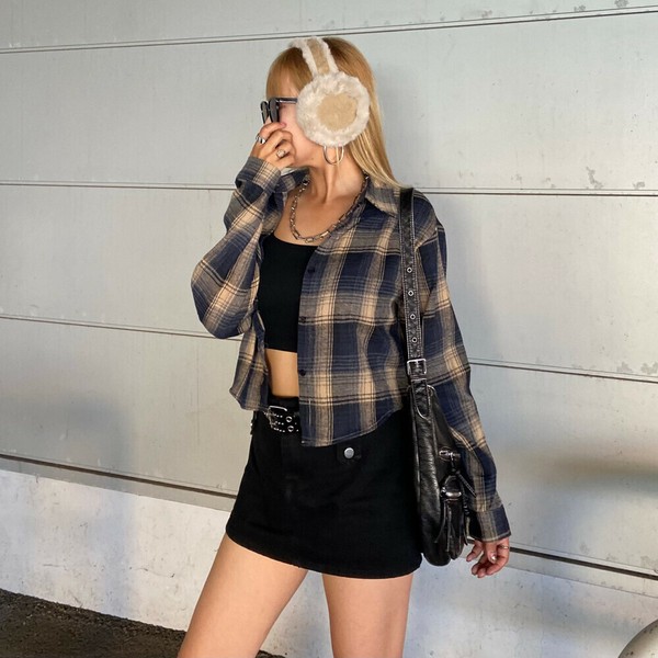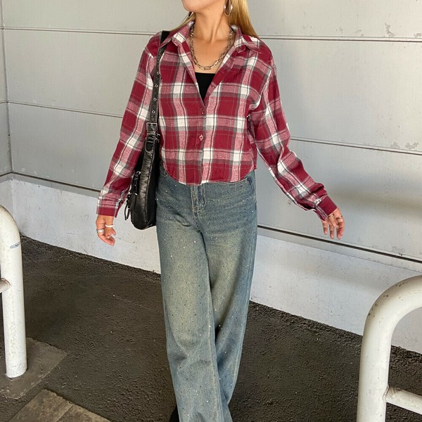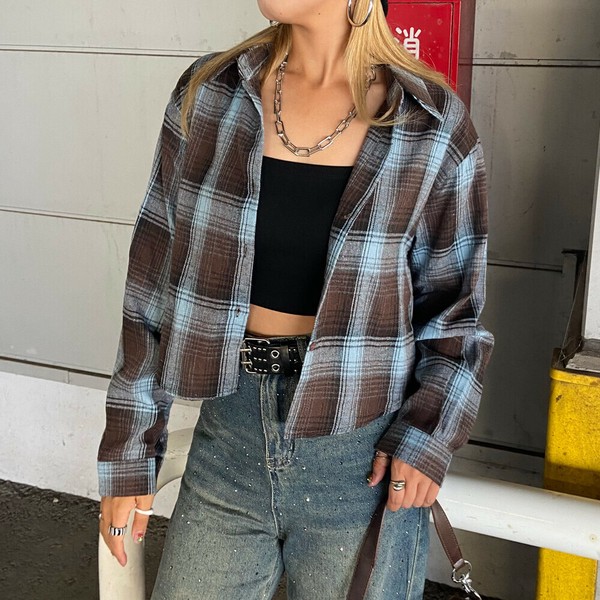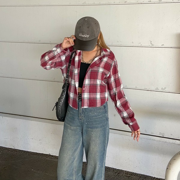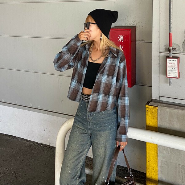 【2025新作】ショートチェックシャツ クロップド丈 ネルシャツ 羽織り チェック柄 秋服 定番