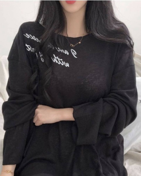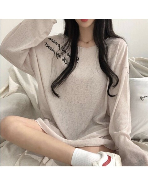 ルーズフィットレタリングシアートップス 長袖 madeinkorea