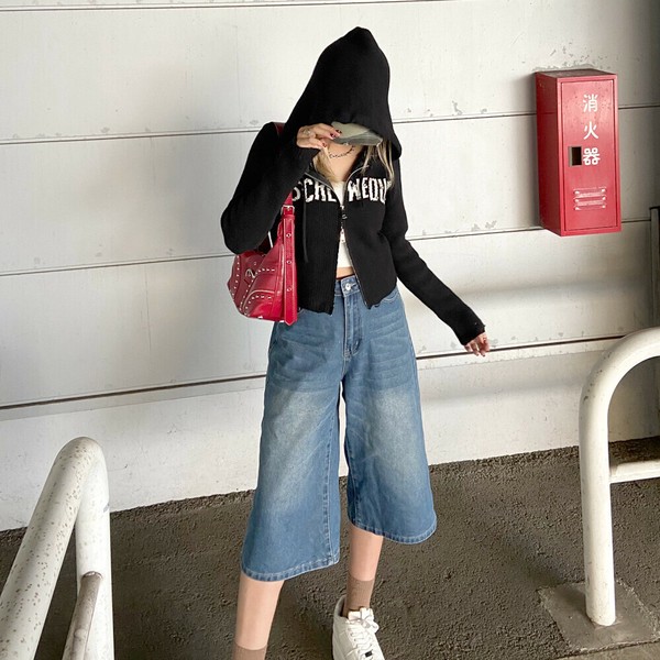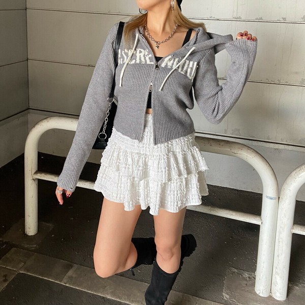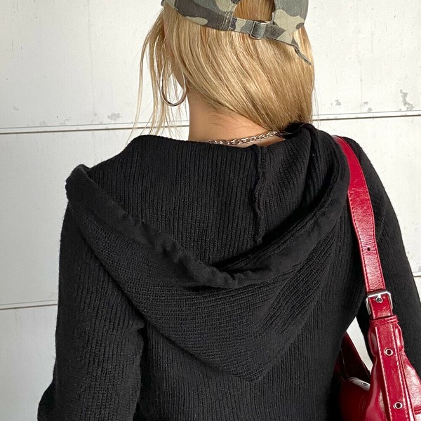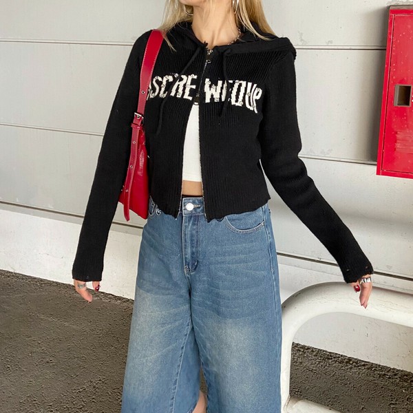 【2025新作】ロゴストーンフードZIP ニットトップス WZIP ニットパーカー ラインストーン