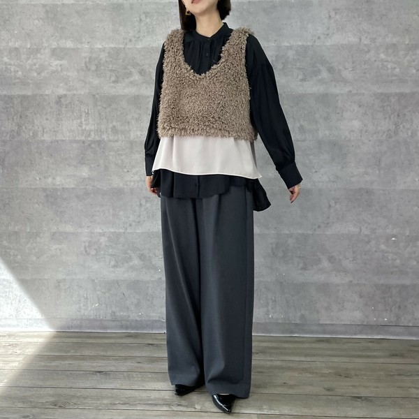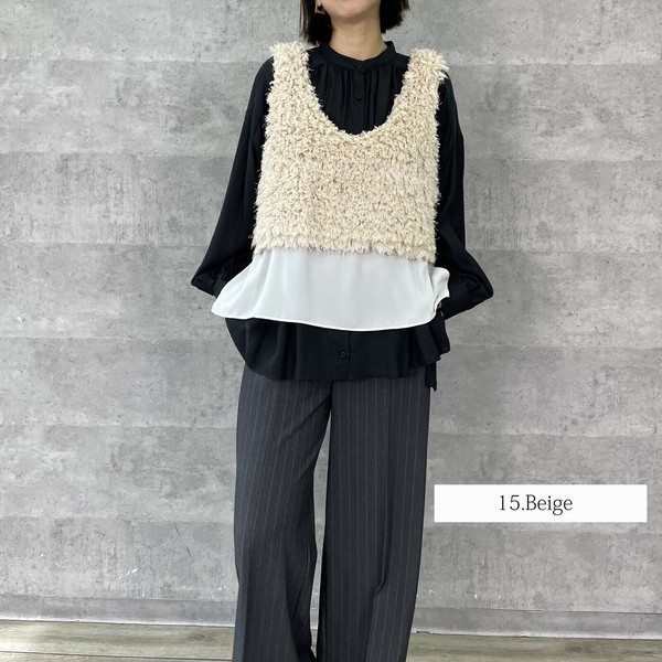 【AnnaKerryアンナケリー27254401】レイヤードファーベスト「2025秋物新作」