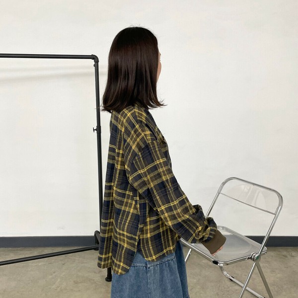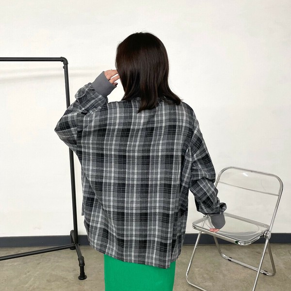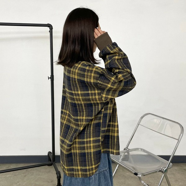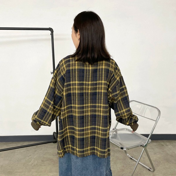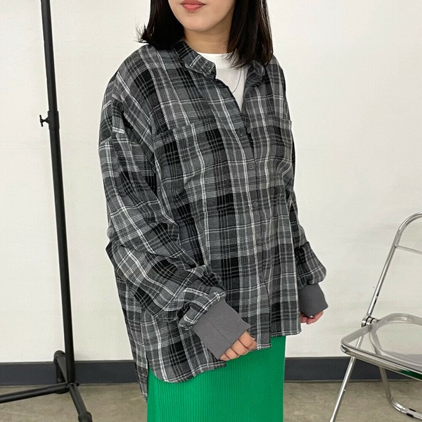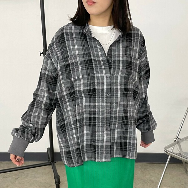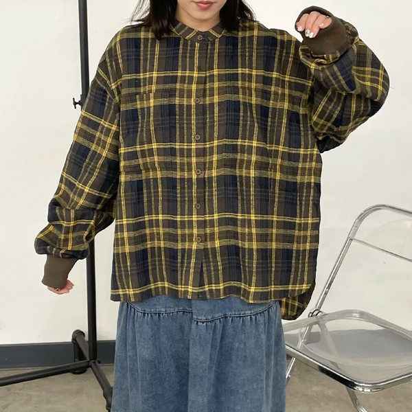 【2025新作】袖リブビッグチェックシャツ 長袖 トップス 秋服 冬服 羽織り 羽織 柄シャツ