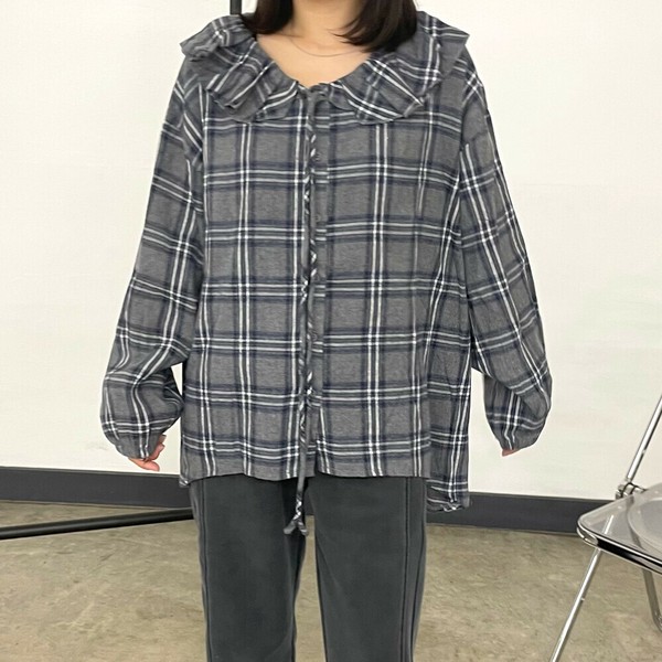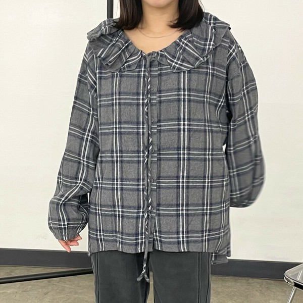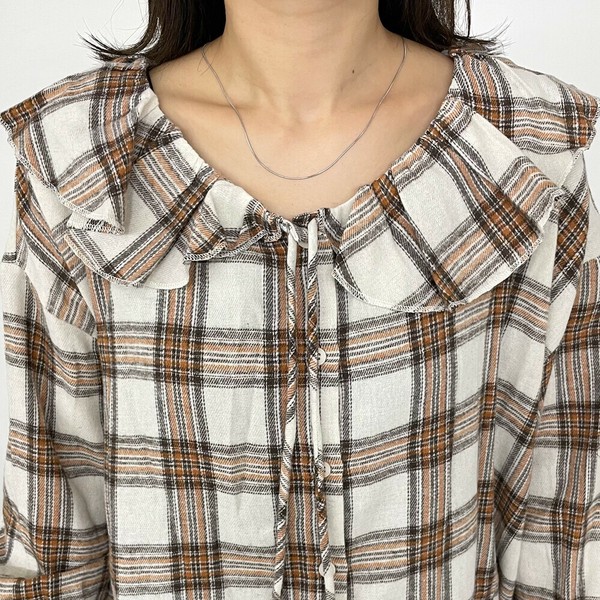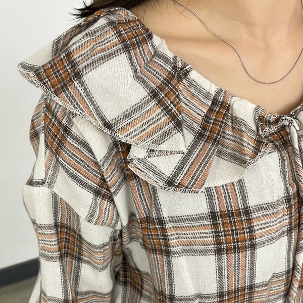 【2025新作】フリルチェックブラウス チェック柄 デザイントップス 長袖 大人カジュアル 秋服
