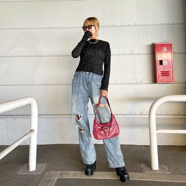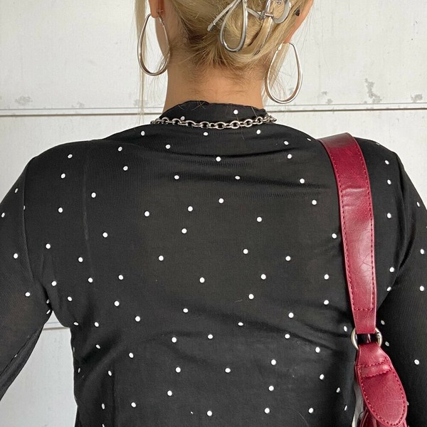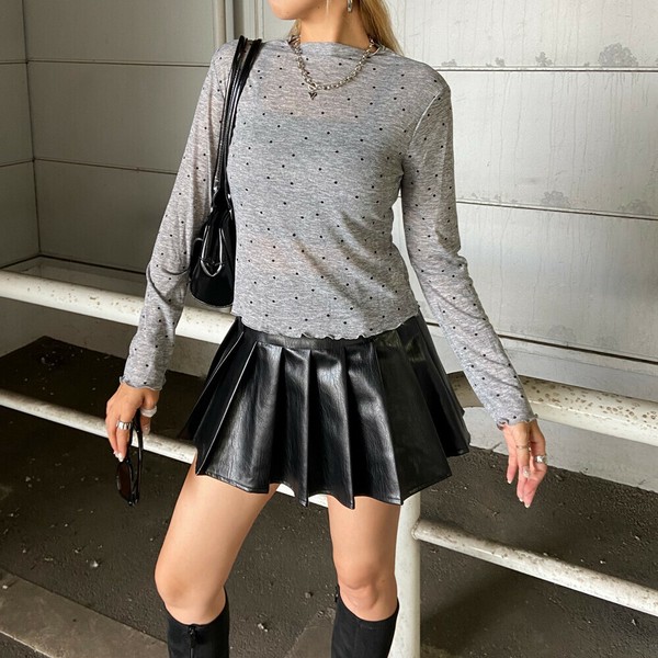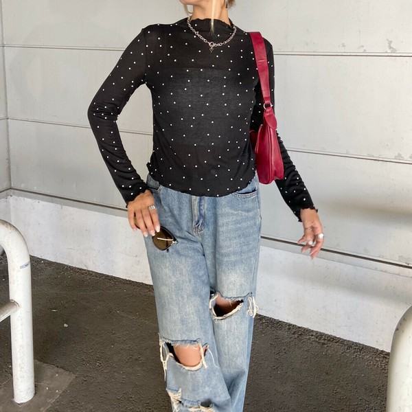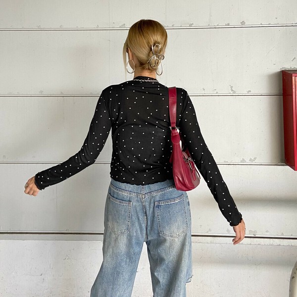 【2025新作】ドットメロートップス シアー 透け ドット柄 水玉模様 ロンT インナー レイヤード