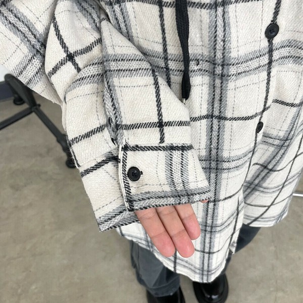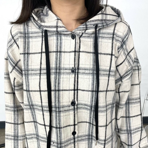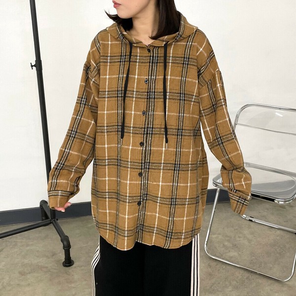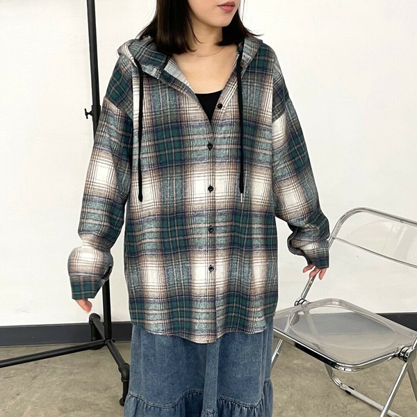 【2025新作】フードチェックシャツチュニック 長袖 羽織 ゆったり 体型カバー ワイド 秋服 冬服