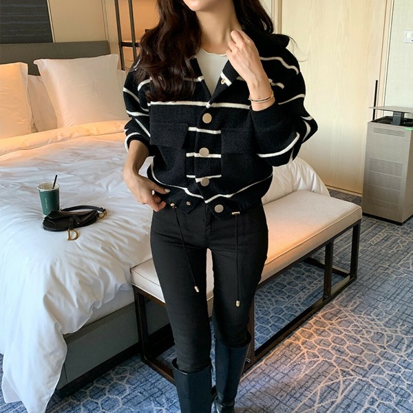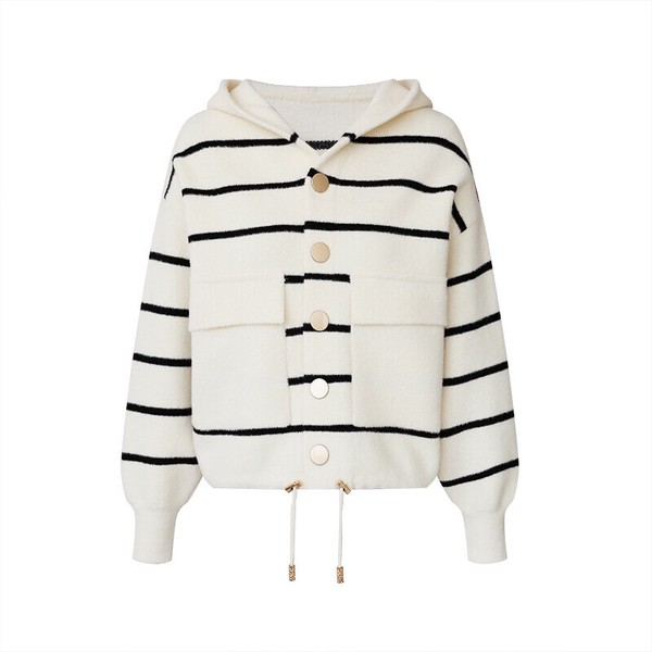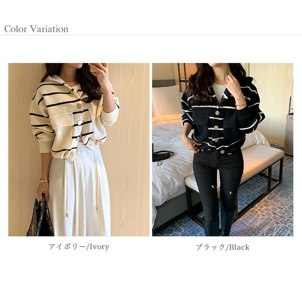 ボーダーフードカーディガン ボーダーカーディガン ニットパーカー カーディガン レディース 金ボタン