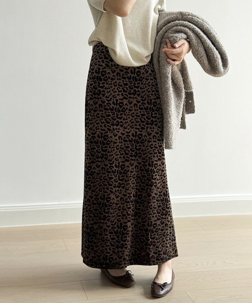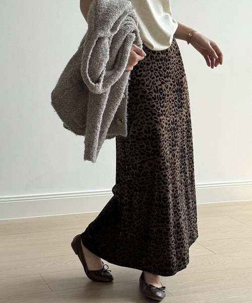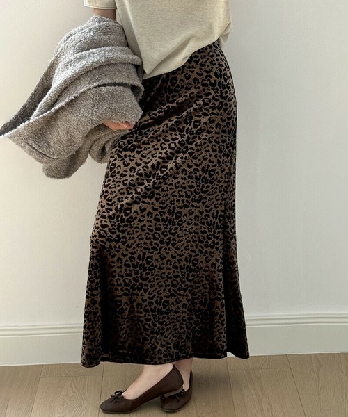 レオパードベロアスカート ベロアスカート ヒョウ柄スカート レオパード スカート レディース ベロア