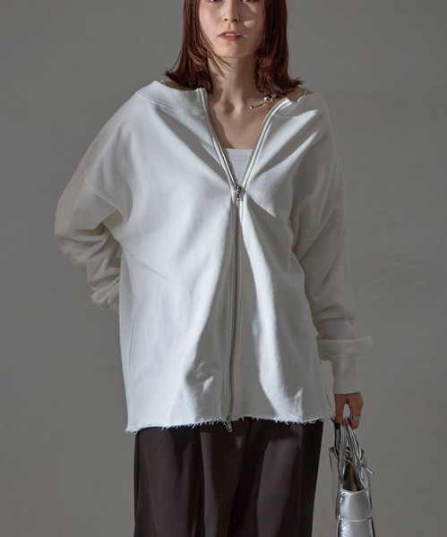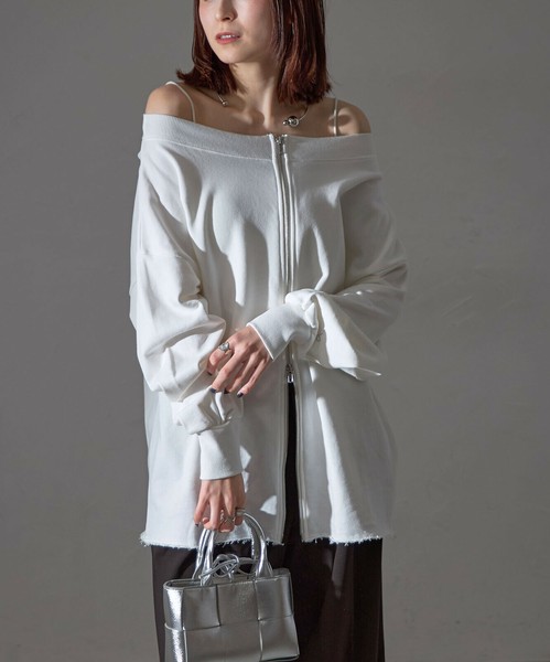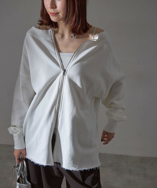 【WEB限定特別価格】最終価格!オフショルダブルジップ裏毛カーディガン SKYpink東京