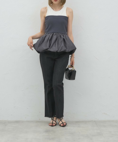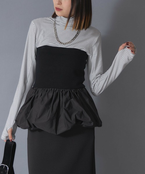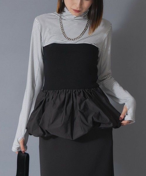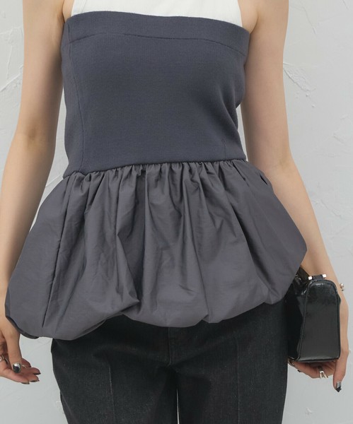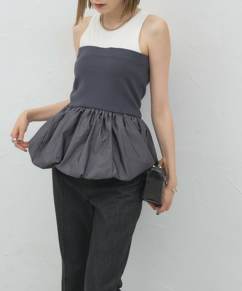 【WEB限定特別価格】最終価格!ナイロンバルーン切替ニットベアトップ  ビスチェ 2025新作 skypink東京