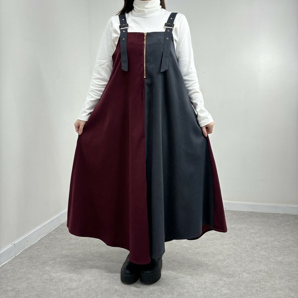 【新作】ブラッシュバイカラーサーキュラージャンパースカート