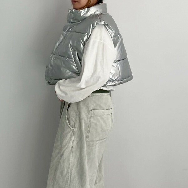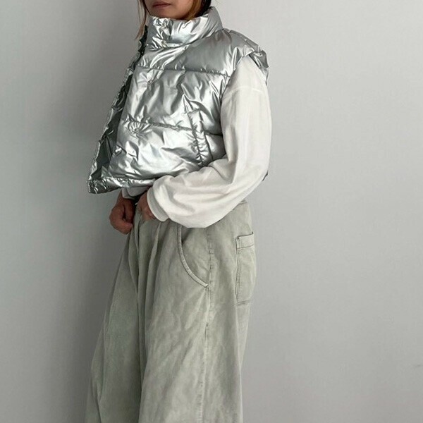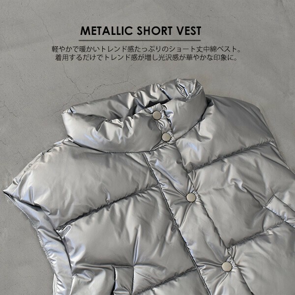 【2025新作】メタリック中綿ショートベスト ショートベスト