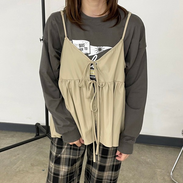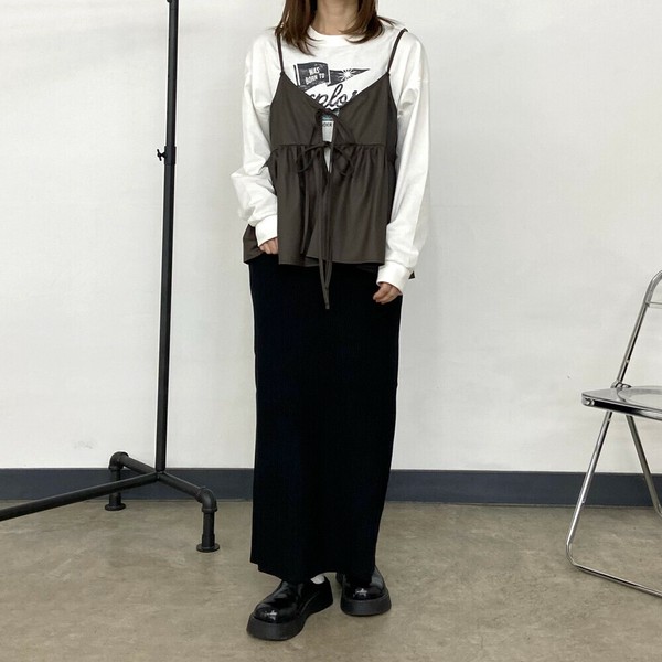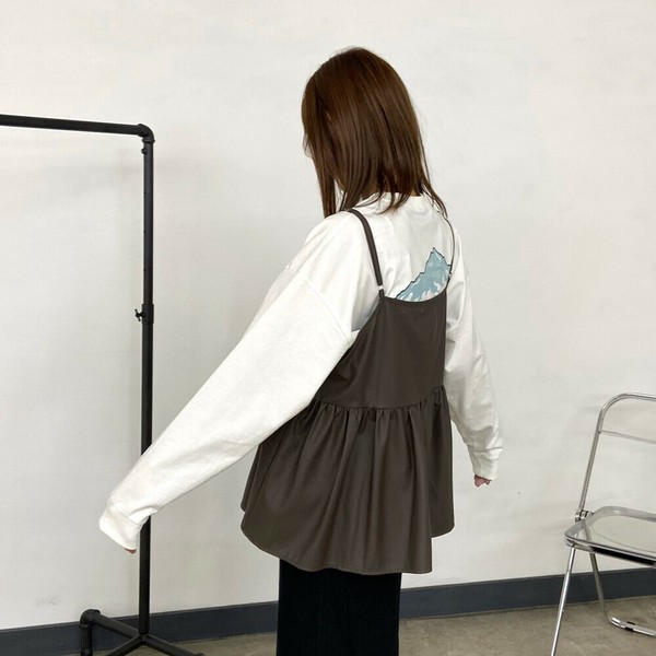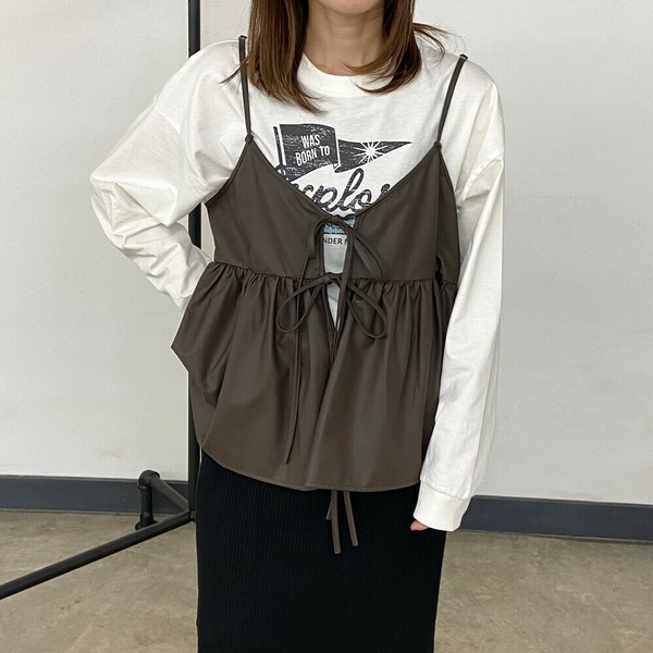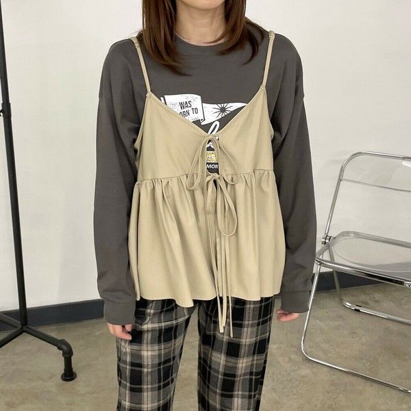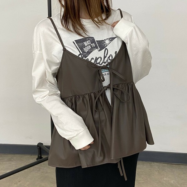 【2025新作】合成皮革キャミソール ビスチェ ベスト フェイクレザー 秋 冬 リボン ゆったり